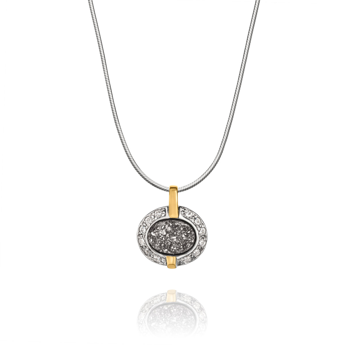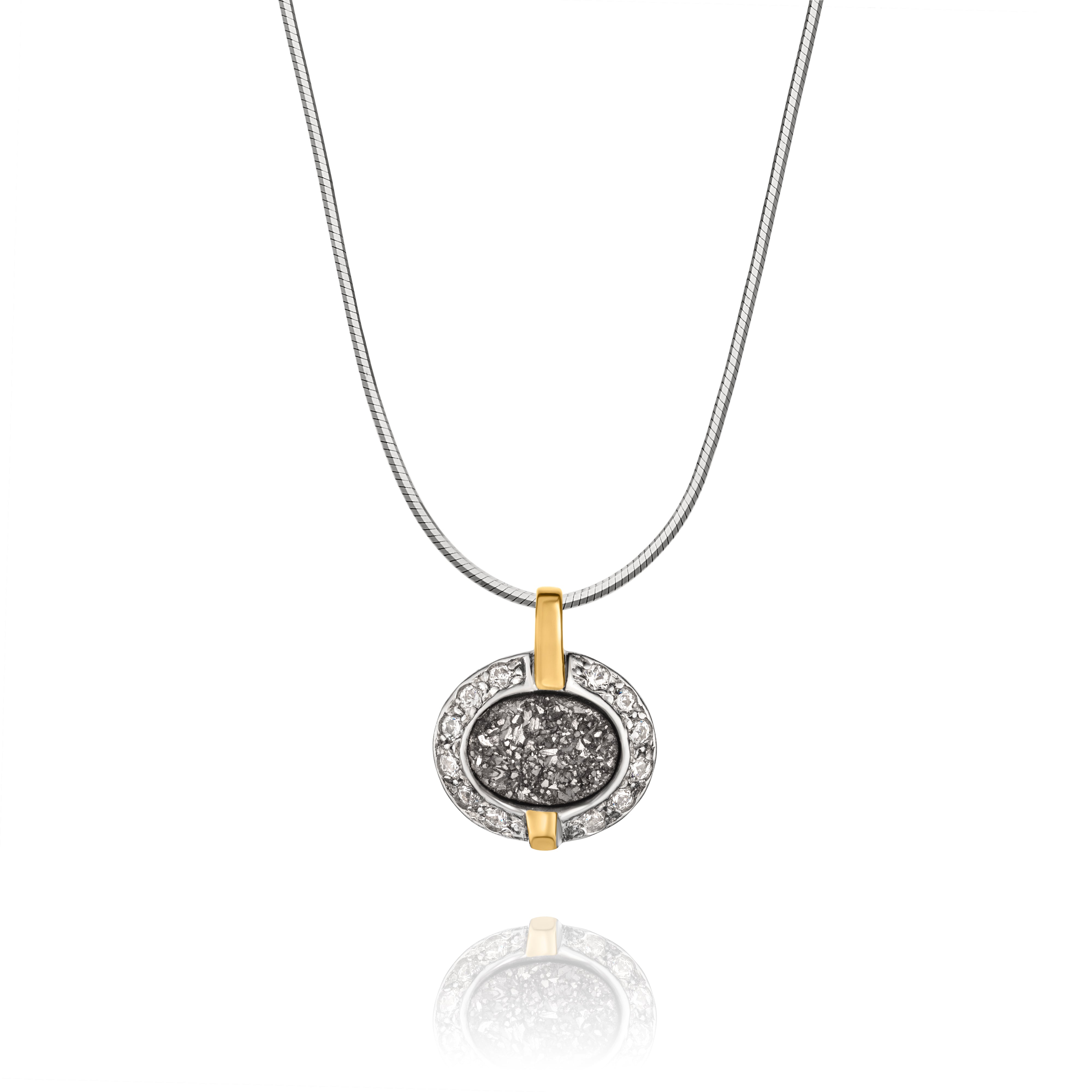Jewelry material: Sterling silver with gold and druzy